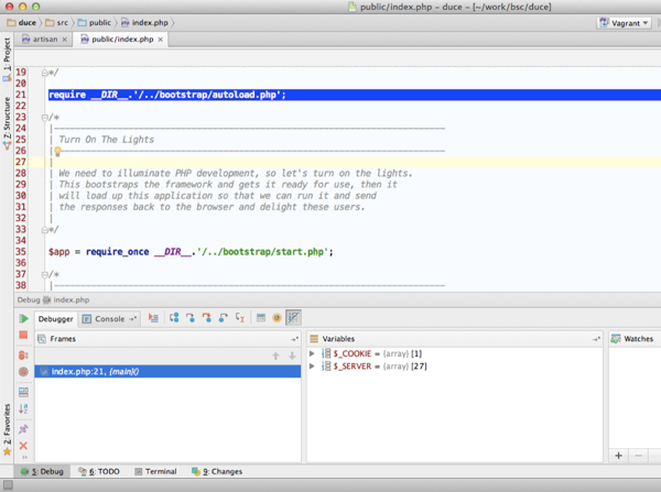 これで、Web でも CLI でも PHP アプリケーションでリモートデバッグができるようになりました。あとは順に実行するなり、任意のコードにブレイクポイントを仕掛けるなり、デバッグを行うことができます。